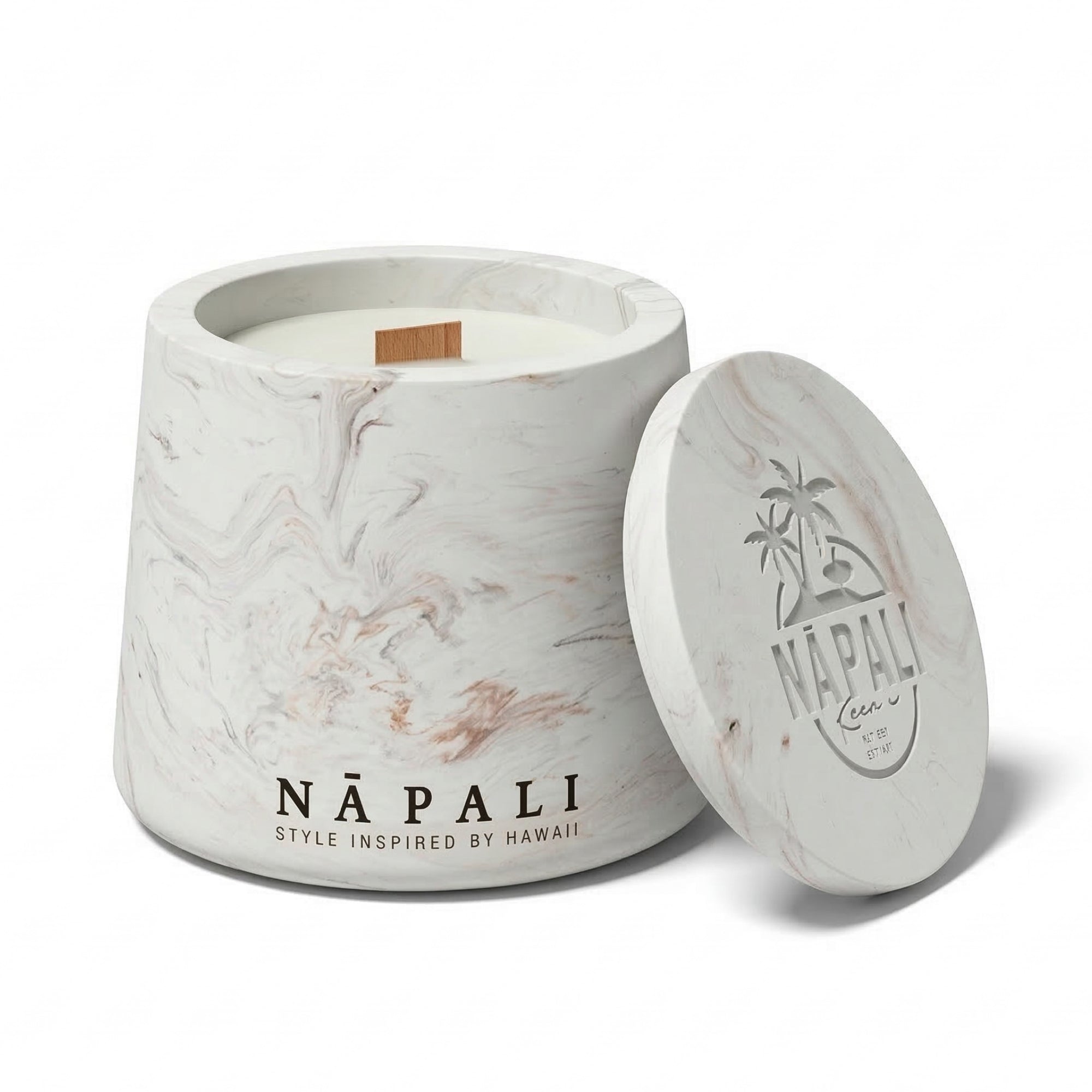 Each candle is housed in a handcrafted eco-resin jar with an amber marble finish, reflecting the golden tones of autumn. A perfect balance of warmth and elegance, Autumn Aloha is part of the Na Pali Stone Collection, celebrating nature’s colours and textures.
