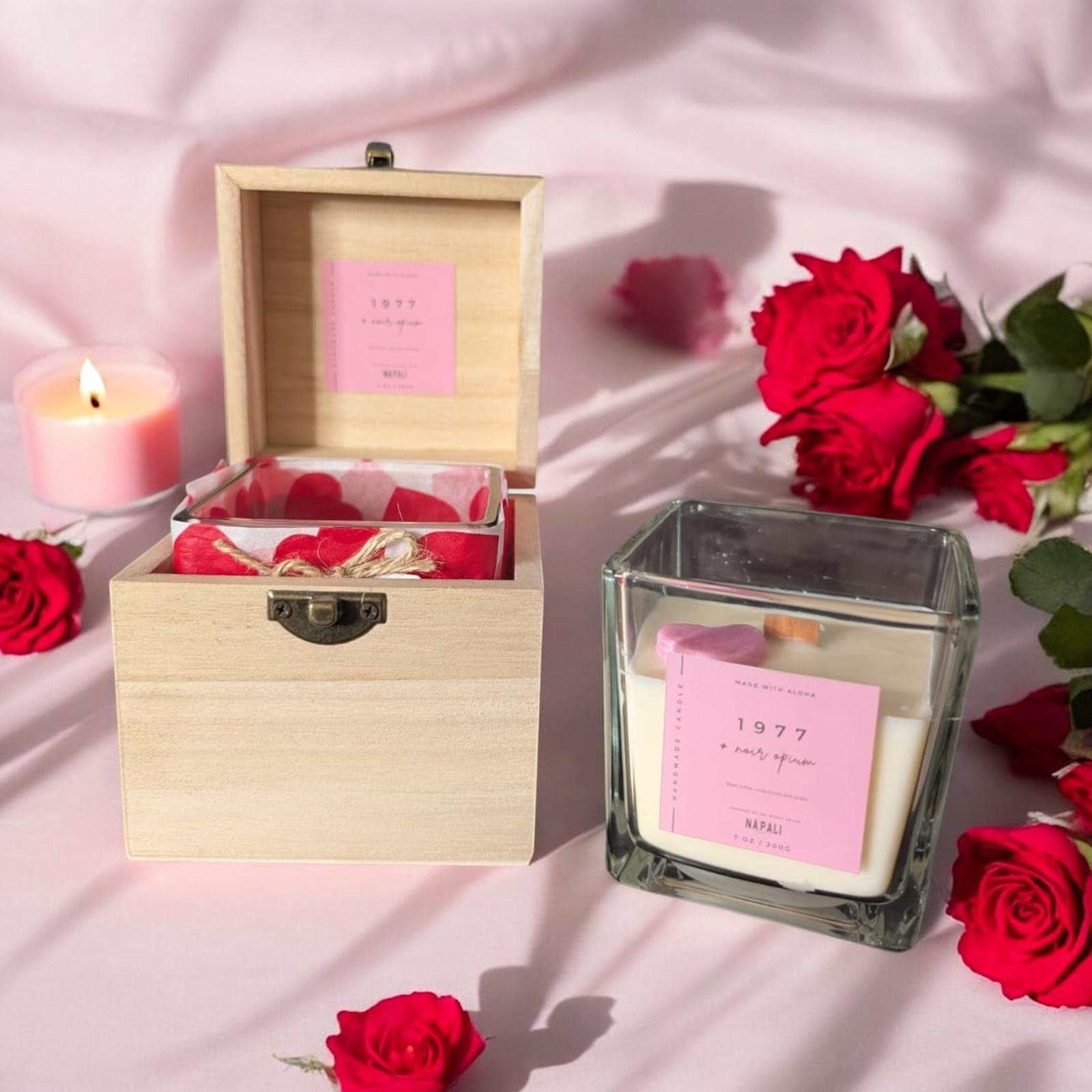 • Every candle comes with a Nā Pali logo embroidered wooden gift box