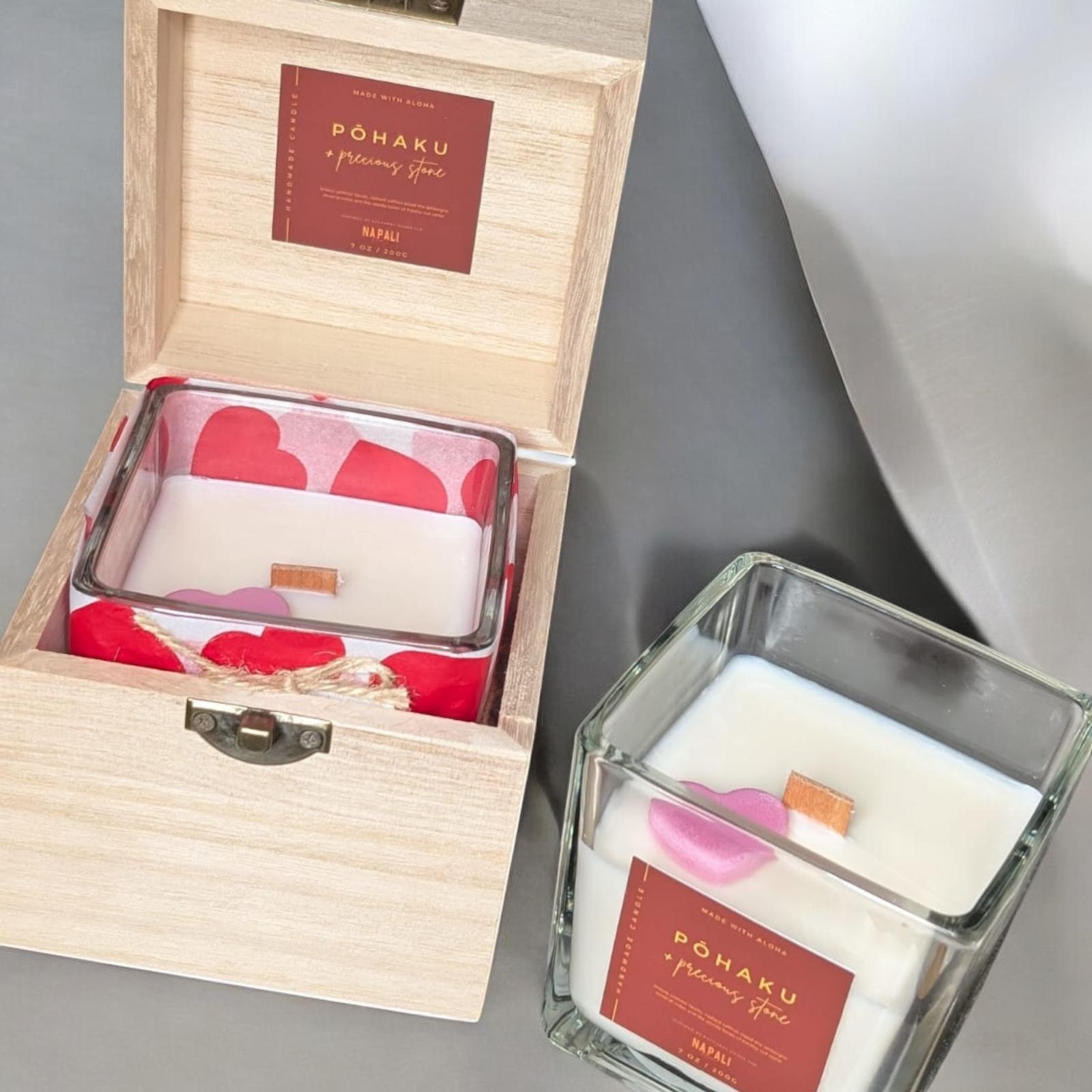 • Every candle comes with a Nā Pali logo embroidered wooden gift box