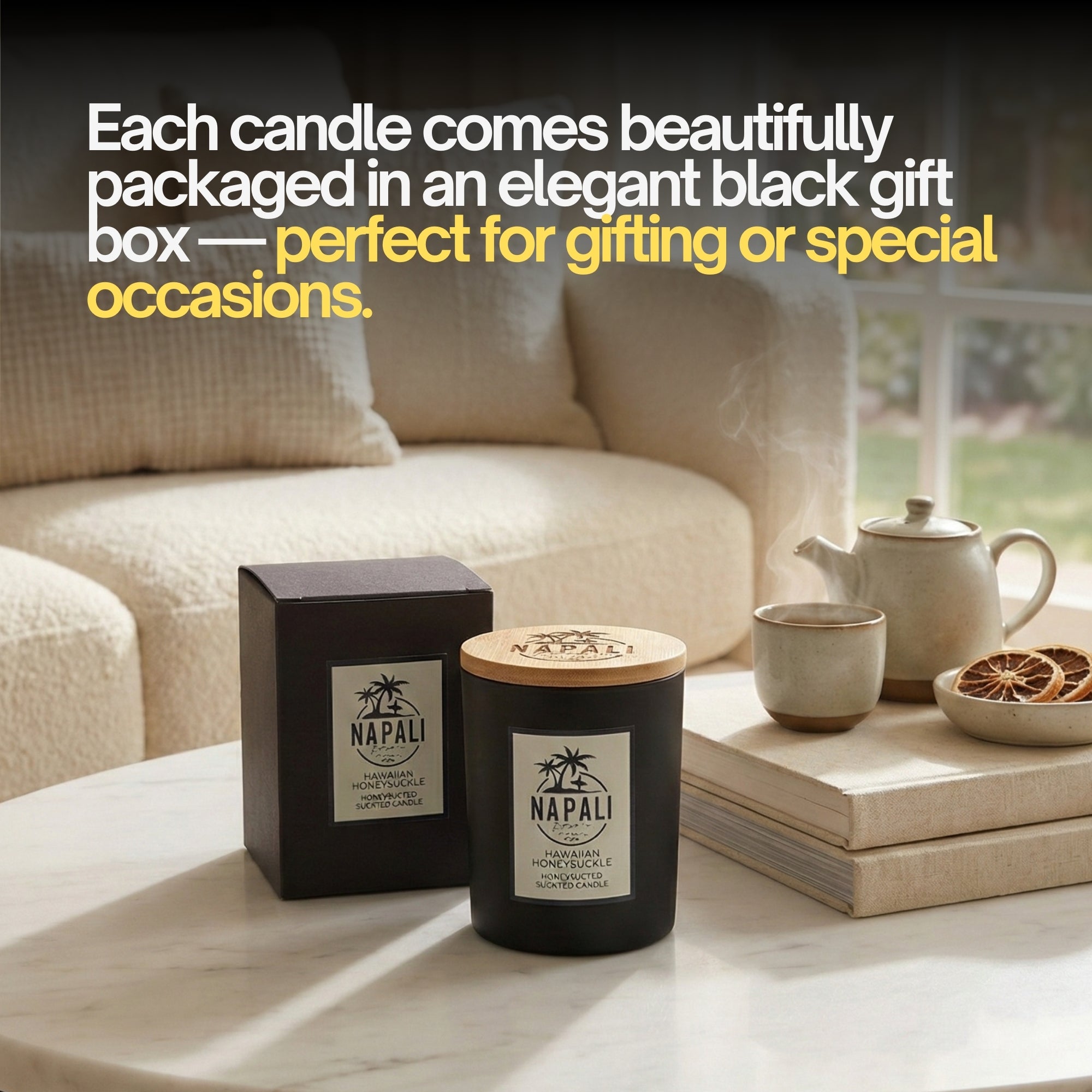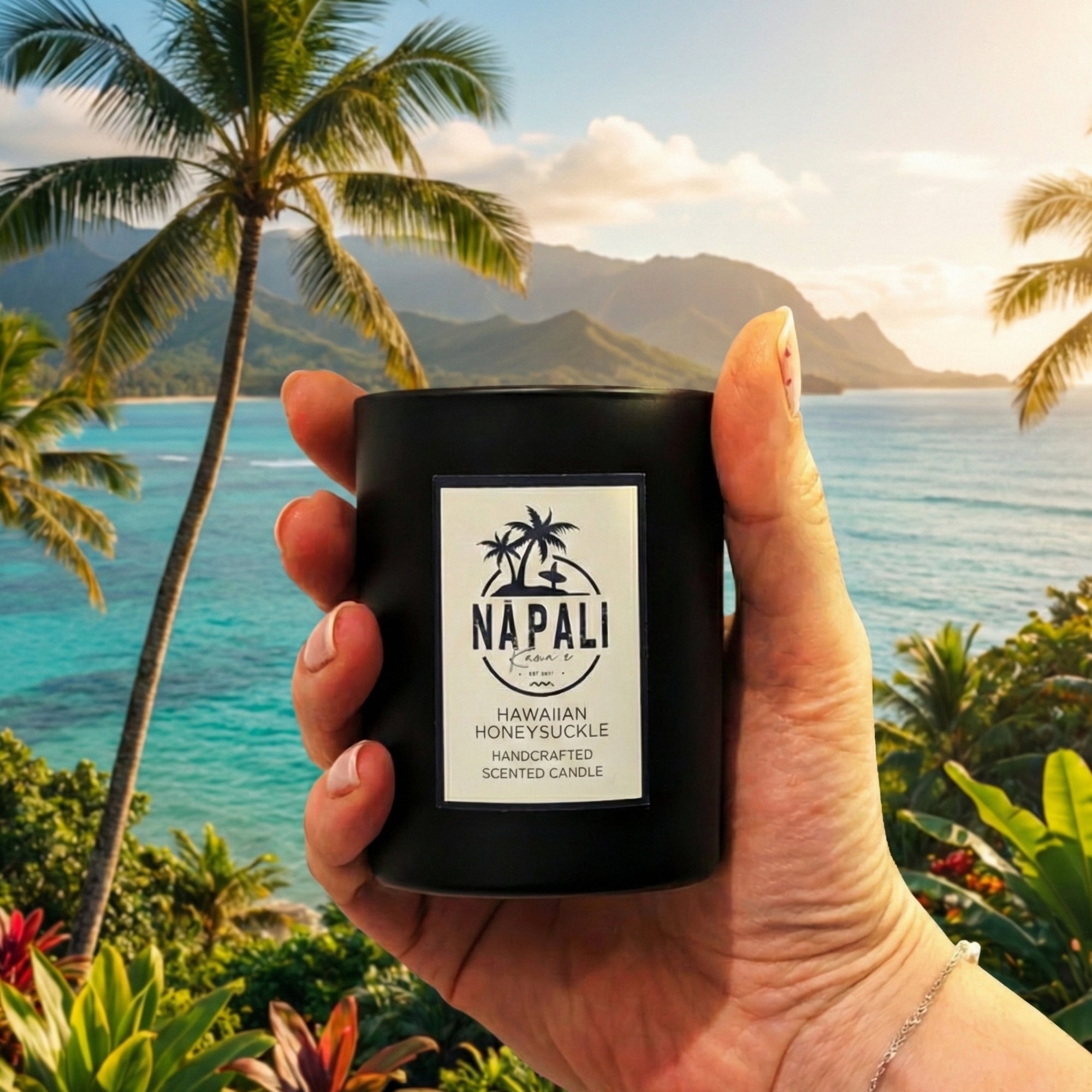 • Every candle comes with a Nā Pali logo embroidered box